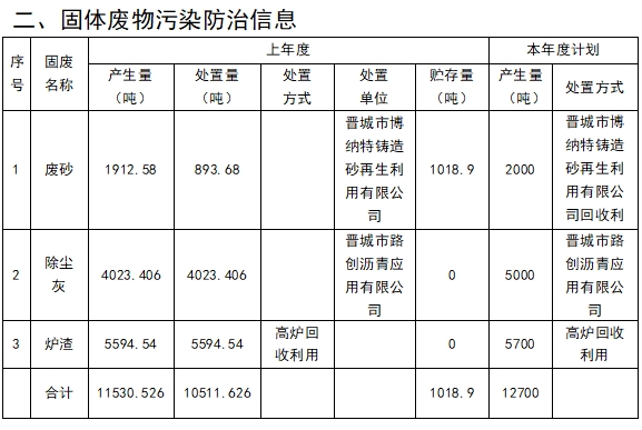 根據《中華人民共和國固體廢物污染環(huán)境防治法》有關(guān)規定,我公司就2024年度產(chǎn)生、利用和處置固體廢物的名稱(chēng)、類(lèi)別、數量等相關(guān)信息進(jìn)行公開(kāi),接受社會(huì )監督。